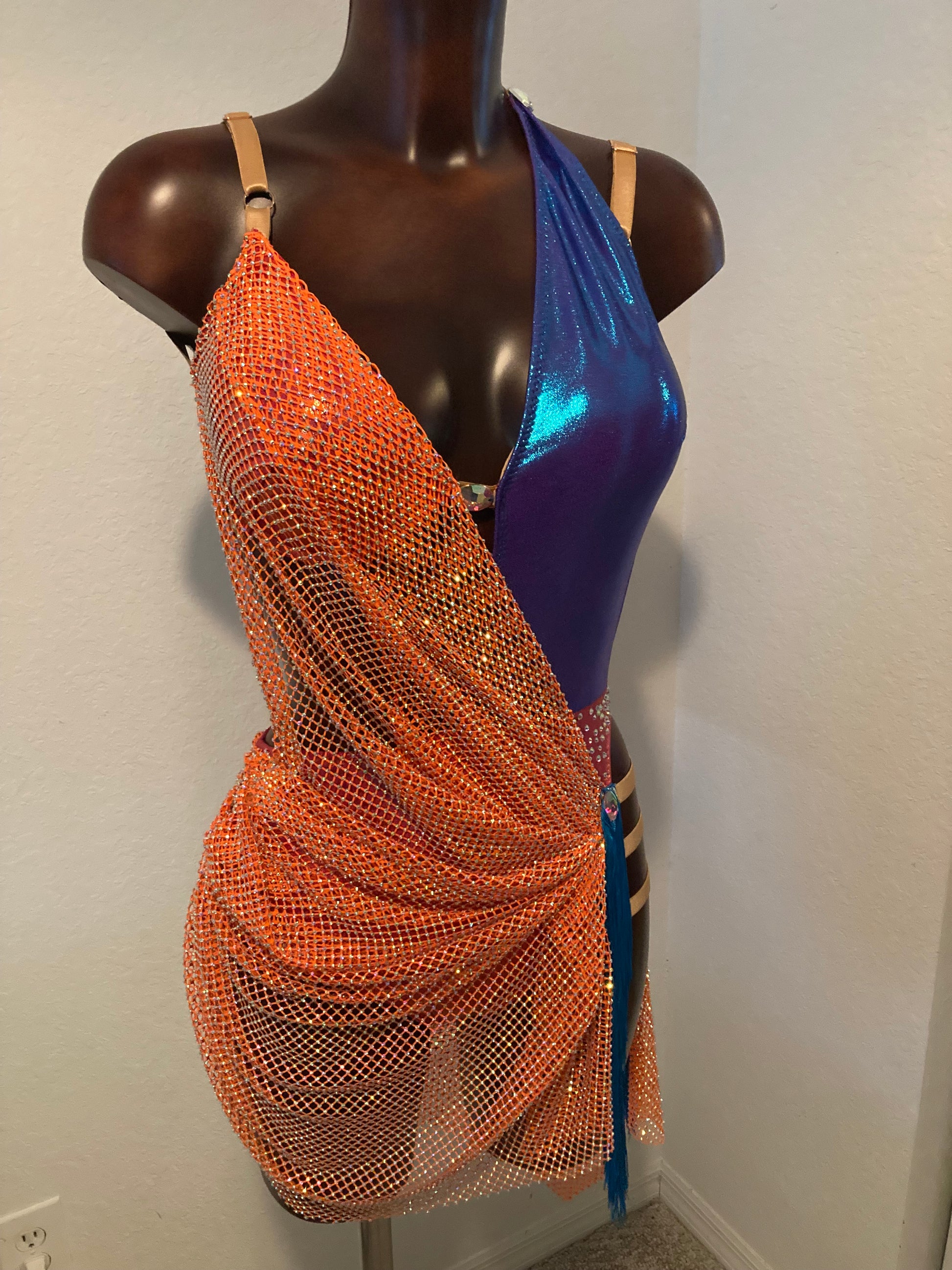 Orange/Blue Latin Salsa Bachata Dance Costume Dress